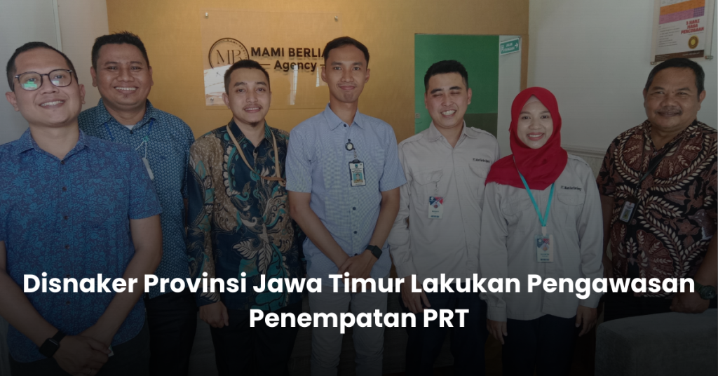 Mami Berlian Agency menerima kunjungan dari Dinas Ketenagakerjaan (Disnaker) Provinsi Jawa Timur pada 09 Maret 2023 dalam rangka pelaporan dan pengawasan penempatan Pekerja Rumah Tangga (PRT). Kunjungan ini merupakan bagian dari upaya pengawasan rutin terhadap lembaga penempatan tenaga kerja agar proses penempatan berjalan sesuai ketentuan.