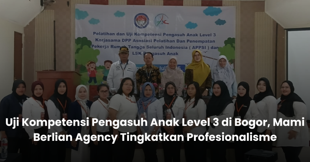Mami Berlian Agency terus menunjukkan komitmennya dalam meningkatkan kualitas layanan penempatan tenaga kerja, khususnya di bidang pengasuhan anak. Pada 22 Juli 2025, karyawan Mami Berlian Agency mengikuti Pelatihan dan Uji Kompetensi Pengasuh Anak Level 3 yang diselenggarakan di Bogor, melalui kerja sama DPP APPSI dan LSK Pengasuh Anak.