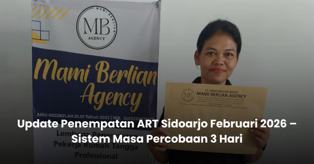 Pada tanggal 21 Februari 2026, telah dilaksanakan pemberangkatan tenaga kerja atas nama Sri Mulyani untuk penempatan kerja di wilayah Sidoarjo. Penempatan ini difasilitasi oleh Mami Berlian Agency sebagai bentuk komitmen dalam menyediakan tenaga kerja yang amanah, profesional, dan sesuai kebutuhan pengguna jasa.